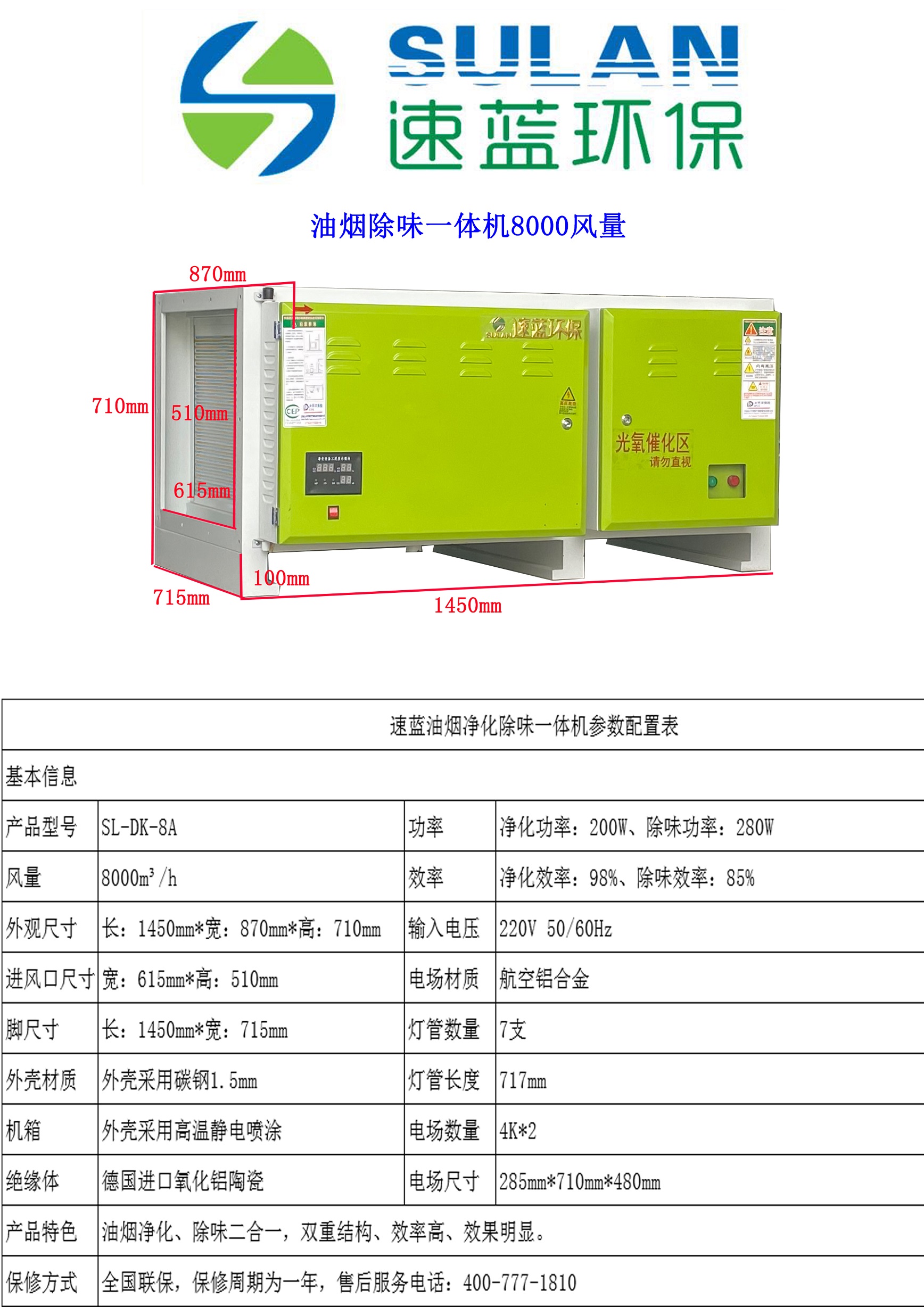 8000風(fēng)量油煙凈化器一體機(jī)類別:餐飲油煙凈化除味一體