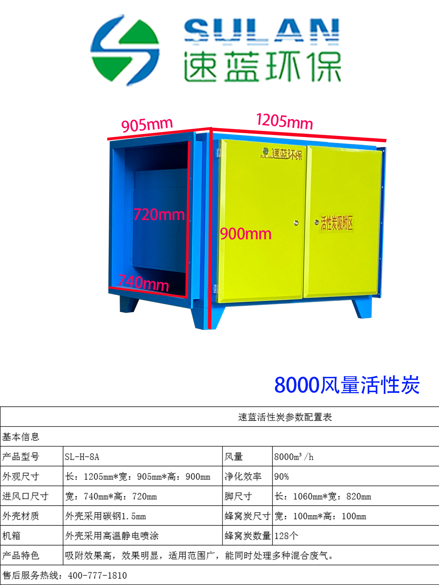 8000風量活性炭吸附設備-速藍環(huán)保類別:活性炭吸附機